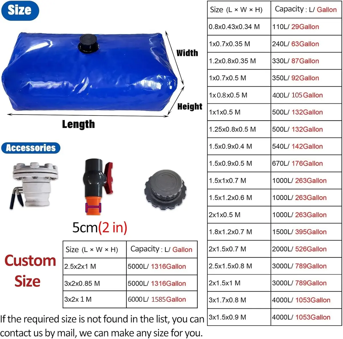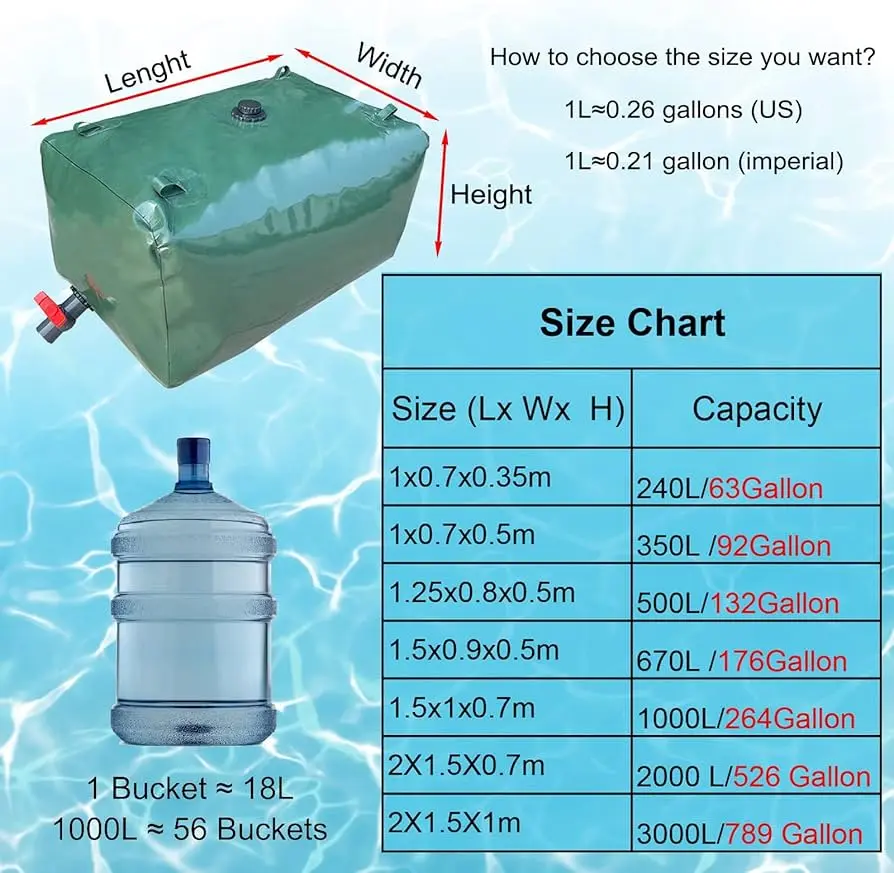 PVC Water Storage Tank,Folding Tarpaulin Reservoir Bag with Valve, Emergency Water Bladder for Outdoor Garden Lrrigation Breeding